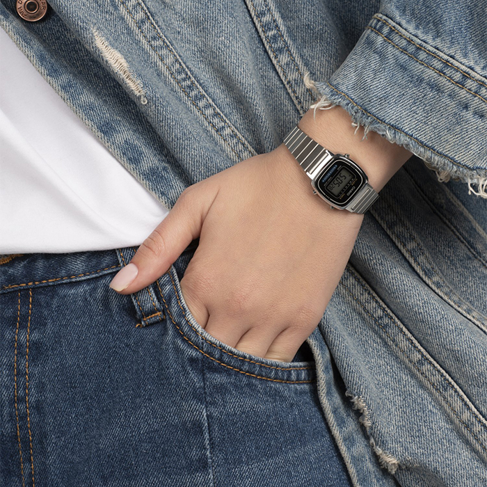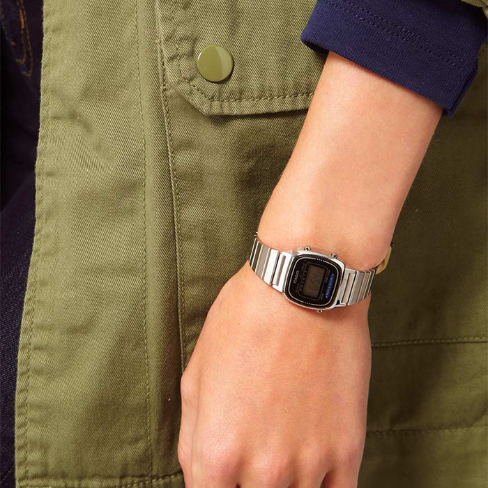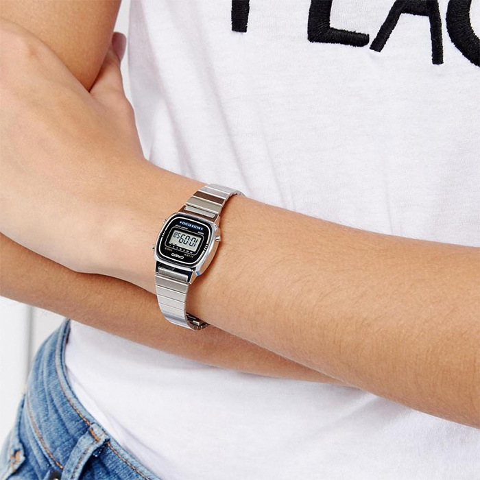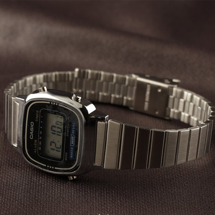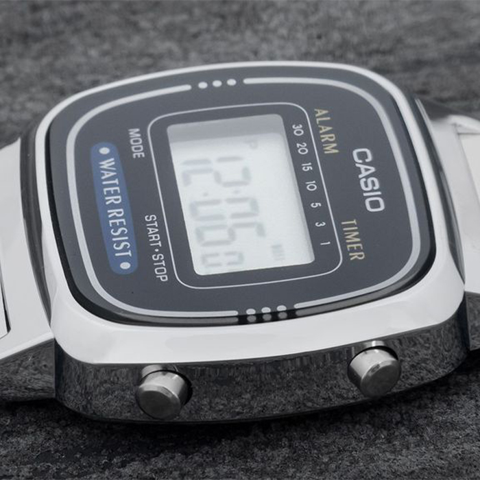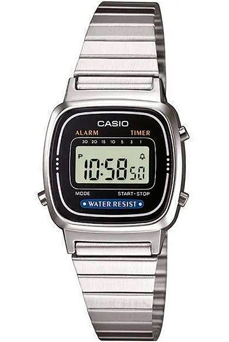 Электронные кварцевые наручные часы Casio Vintage LA670WEA-1 с цифровой индикацией времени. Калибр механизма — 3191. Функциональность данной модели: 12-и часовой формат времени, автоматический календарь, будильник, секундомер с точностью 1/10 секунды и измерением до 59 минут 59,99 cек., таймер обратного отсчета (диапазон времени 30 минут), предустановленное время начала обратного отсчета: 1, 3, 5, 10, 15, 20, 30 минут. Стальной браслет. Водонепроницаемость WR (3 атм). Размеры корпуса: (ШxВxТ) 24.6x30.3x7.3 мм. Гарантийный срок — 3 года (1 год от производителя + 2 года от магазина).