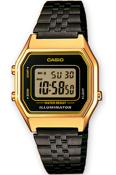 Электронные кварцевые женские наручные часы Casio Vintage LA680WEGB-1A с цифровой индикацией времени. Калибр механизма — 3284. Функциональность данной модели: формат времени 12/24, автоматический календарь, будильник, сигнал начала часа, секундомер с точностью 1/100 секунды и измерением до 59 минут 59,99 cек. Диодная подсветка циферблата.