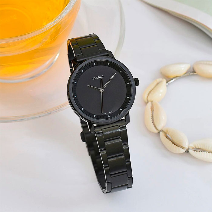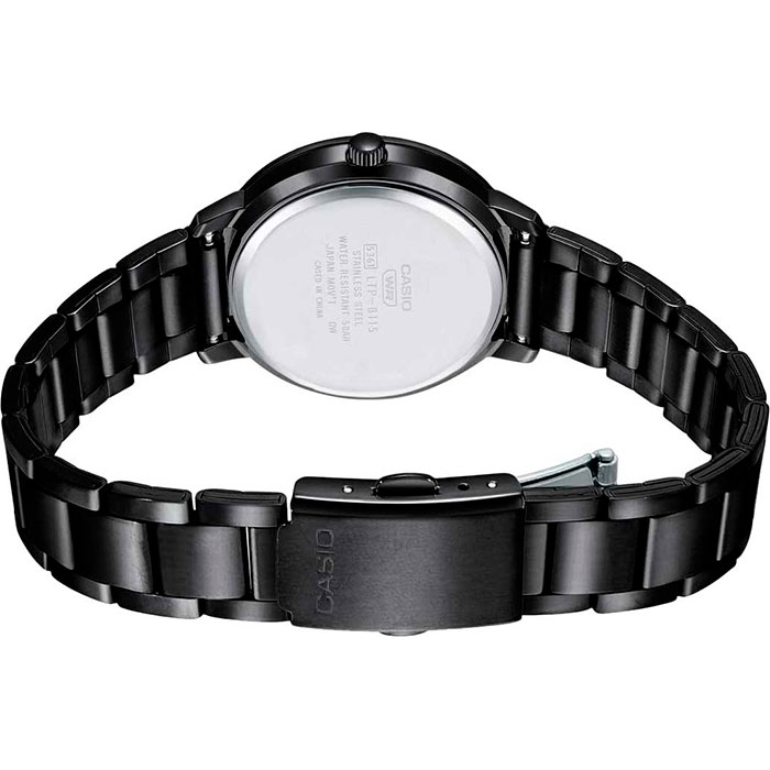 Женские кварцевые наручные часы Casio LTP-B115B-1E. Калибр механизма — 5361. Стальной браслет. На корпус и браслет нанесено стойкое PVD покрытие. Водонепроницаемость WR50 (5 атм). Размеры корпуса: (ШxВxТ) 33.9x38.7x7.6 мм. Гарантийный срок — 3 года (1 год от производителя + 2 года от магазина).