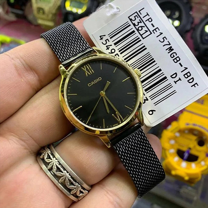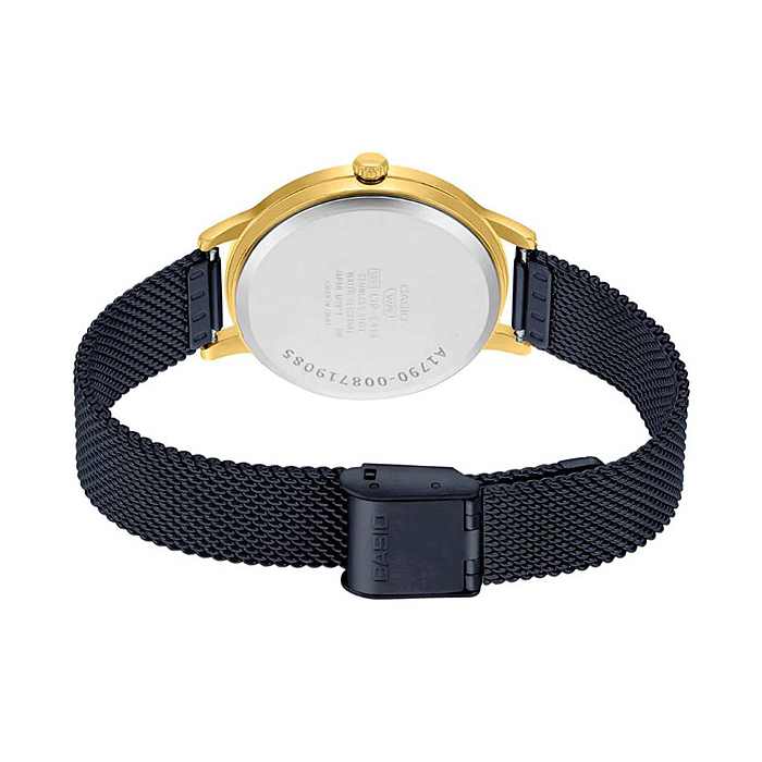 Женские кварцевые наручные часы Casio LTP-E157MGB-1B. Калибр механизма — 5361. На корпус и браслет нанесено стойкое PVD покрытие. Стальной браслет миланского плетения. Водонепроницаемость WR (3 атм). Размеры корпуса: (ШxВxТ) 32x37.5x8 мм Гарантийный срок — 3 года (1 год от производителя + 2 года от магазина).