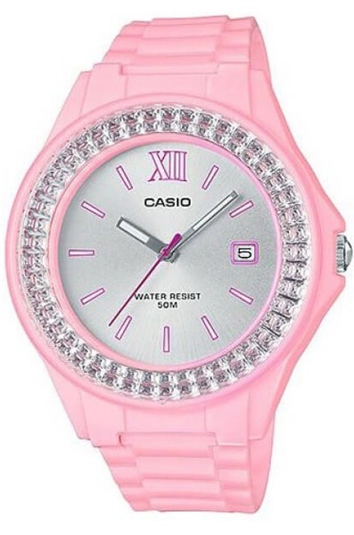 Женские кварцевые наручные часы Casio LX-500H-4E4. Калибр механизма — 2784. Стрелки покрыты люминесцентным напылением (светятся в темноте). Водонепроницаемость WR50 (5 атм).