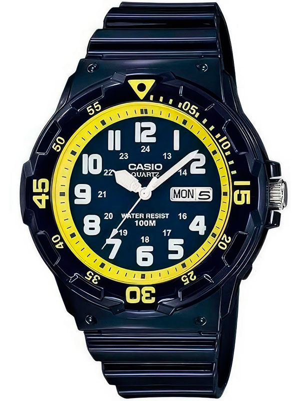 Мужские кварцевые наручные часы Casio MRW-200HC-2B. Калибр механизма — 5125. На данной модели отображается дата и день недели. Стрелки покрыты люминесцентным напылением (светятся в темноте). Вращающийся безель. Размеры корпуса: Диаметр 43 мм; толщина 12.1 мм Гарантийный срок — 3 года (1 год от производителя + 2 года от магазина).