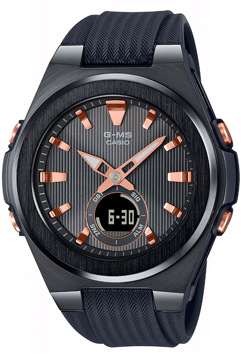 Противоударные кварцевые женские наручные часы Casio MSG-C150G-1A коллекции Baby-G с двойной индикацией времени. Калибр механизма — 5628. Функциональность данной модели: формат времени 12/24, мировое время в 27 городах (29 часовых поясах), автоматический календарь до 2099 года, функция летнего времени (DST), 5 будильников, сигнал начала часа, секундомер с измерением до 59 минут 59 cек., таймер обратного отсчета (диапазон времени 1 час), диодная подсветка циферблата с возможность выбора времени свечения (1.5 или 3 секунды). Стрелки покрыты необритовым (Neobrite) люминесцентным напылением (светятся в темноте). Пластиковый корпус в оболочке из нержавеющей стали. На стальную часть корпуса нанесено стойкое PVD покрытие. Водонепроницаемость WR100 (10 атм). Размеры корпуса: (ШxВxТ) 40.3x45.3x12.1 мм. Гарантийный срок — 3 года (1 год от производителя + 2 года от магазина).