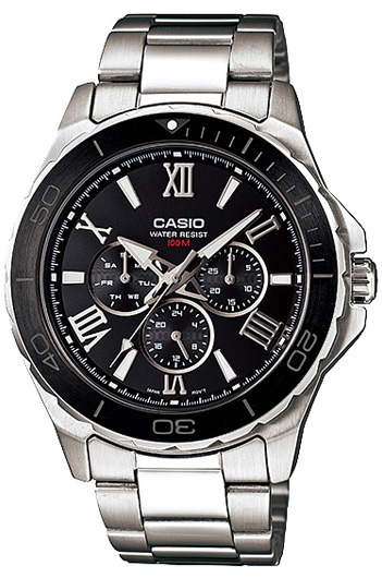 Мужские кварцевые наручные часы Casio MTD-1075D-1A1. Калибр механизма — 1343. На данной модели отображается дата, день недели и время суток (24-х часовая шкала). Стрелки и цифры покрыты люминесцентным напылением (светятся в темноте). Завинчивающаяся задняя крышка. Вращающийся безель.