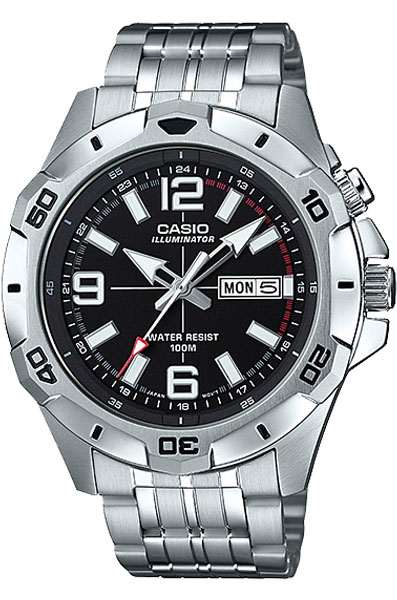 Мужские кварцевые часы Casio MTD-1082D-1A. Калибр механизма — 5373. На циферблате отображается дата и день недели. Диодная подсветка циферблата и люминесцентное напыление на стрелках и метках. Завинчивающаяся задняя крышка часов. Водонепроницаемость WR100 (10 атм). Вращающийся безель.