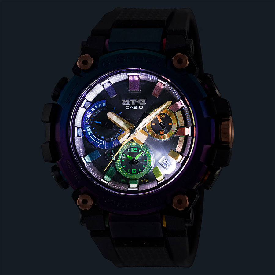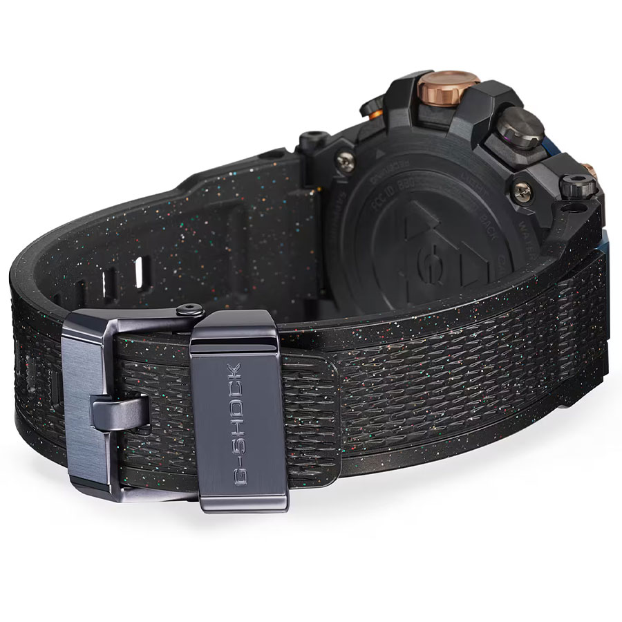 Корпус изготовлен из углеродного волокна и нержавеющей стали с защитным PVD-покрытием, что в сочетании с технологией TRIPLE G RESIST обеспечивает устойчивость к ударам, вибрациям и центробежной силе. Сапфировое стекло с антибликовым покрытием защищает циферблат, а полимерный ремешок гарантирует комфорт при носке.
