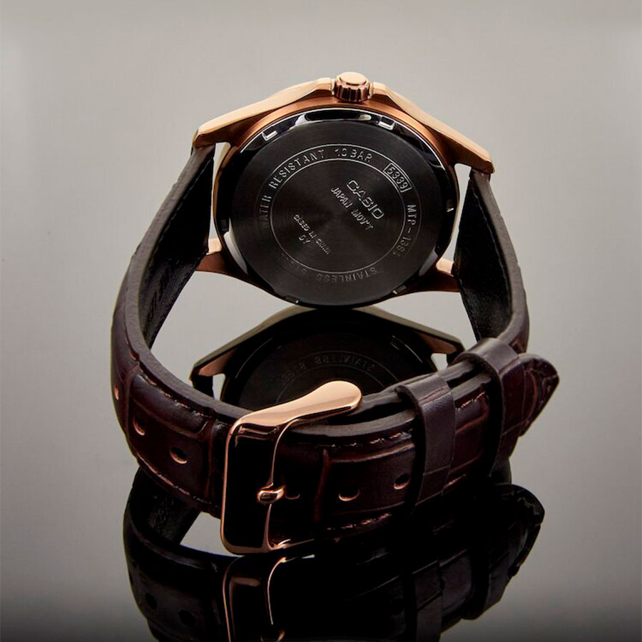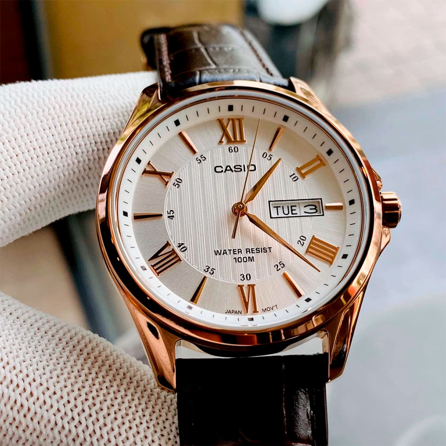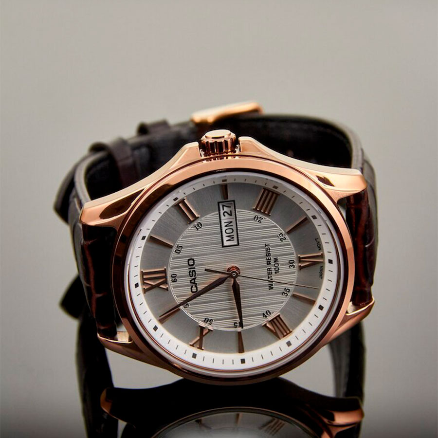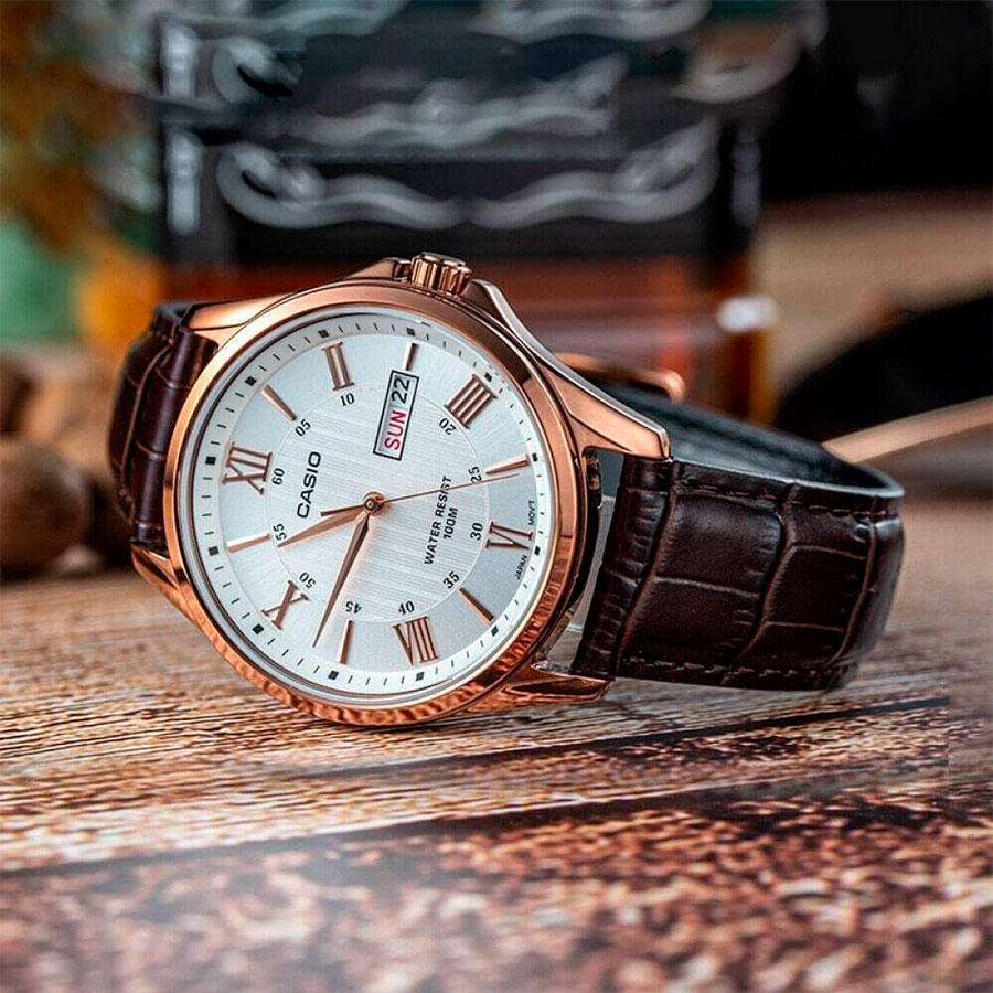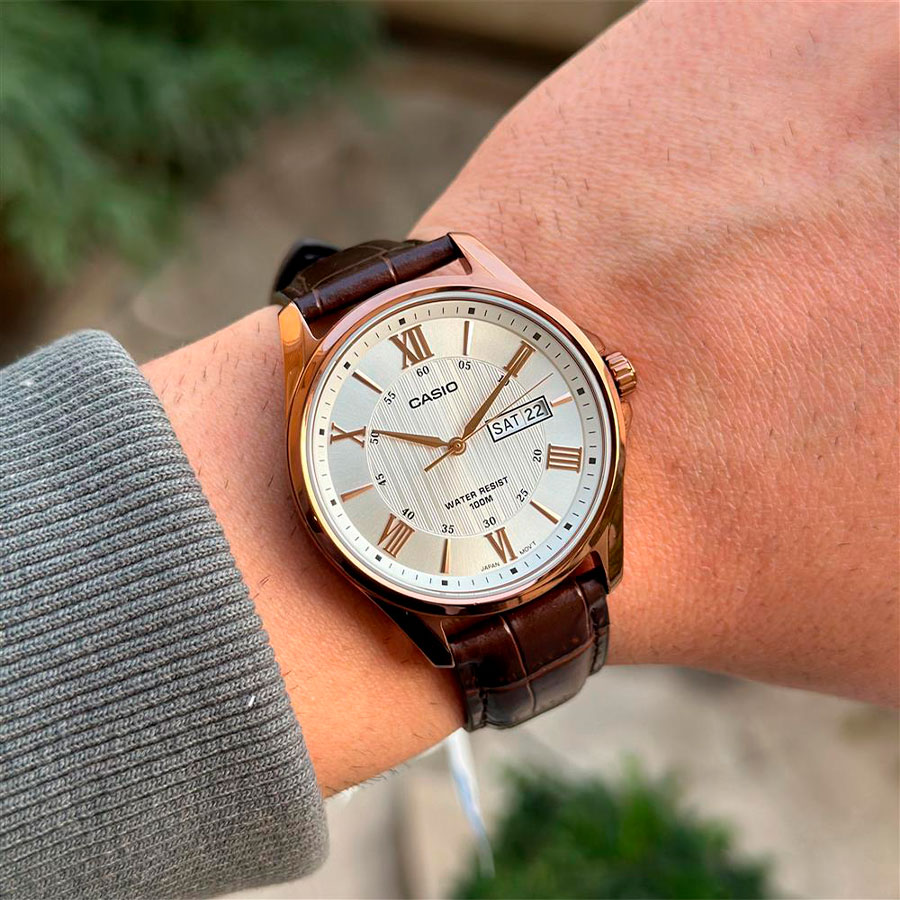 Мужские кварцевые наручные часы Casio MTP-1384L-7A. Калибр механизма — 5339. На данной модели отображается день недели и текущая дата. На корпус нанесено стойкое PVD покрытие. Кожаный ремешок. Водонепроницаемость WR100 (10 атм). Размеры корпуса: (ШxВxТ) 41x47x10 мм. Гарантийный срок — 3 года (1 год от производителя + 2 года от магазина).