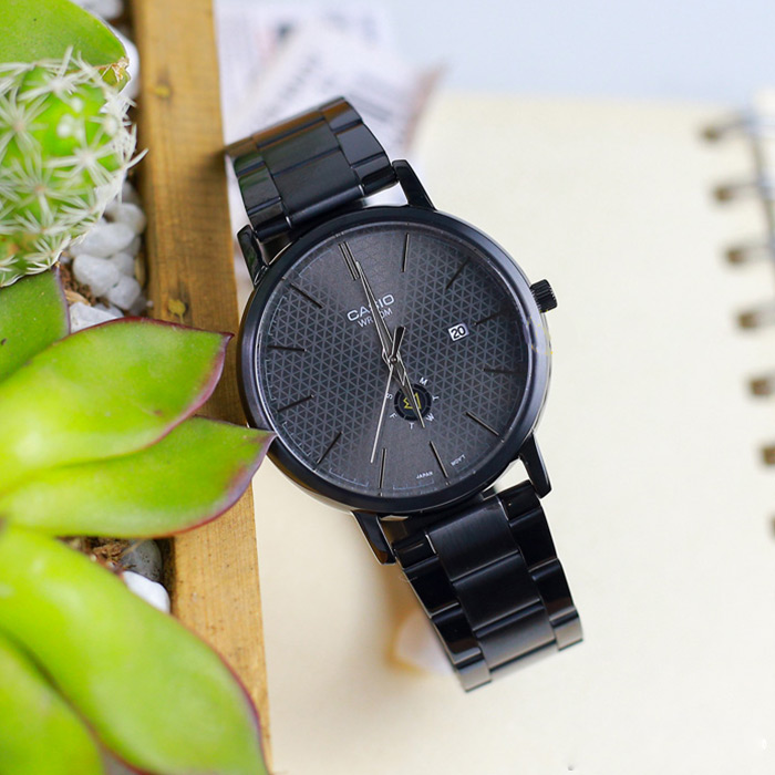 Мужские кварцевые наручные часы Casio MTP-B125B-8A. Калибр механизма — 5704. На данной модели отображается день недели и текущая дата. Стальной браслет. На корпус и браслет нанесено стойкое PVD покрытие. Водонепроницаемость WR50 (5 атм). Размеры корпуса: (ШxВxТ) 41x48x8.3 мм. Гарантийный срок — 3 года (1 год от производителя + 2 года от магазина).