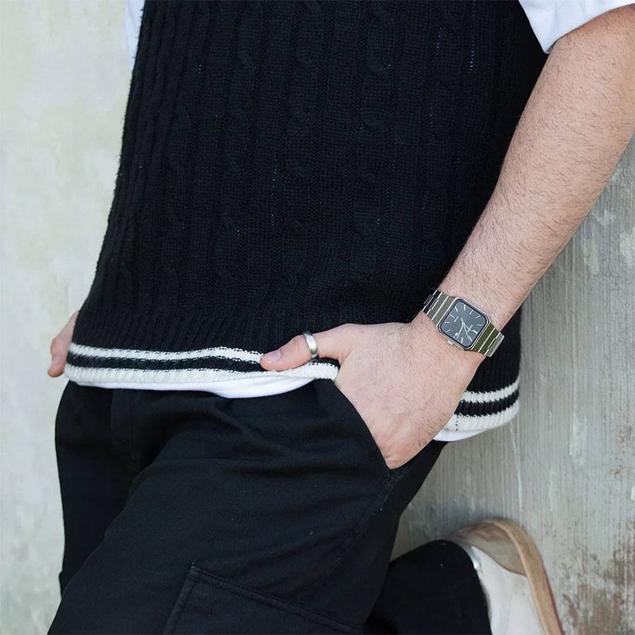 Корпус и браслет изготовлены из нержавеющей стали, что подчеркивает надежность модели и придает ей строгий характер. Черный циферблат гармонирует с металлическим блеском браслета, а минеральное стекло защищает часы от случайных царапин.