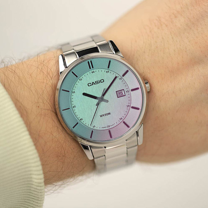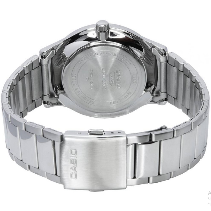 Мужские кварцевые наручные часы Casio MTP-E605D-7E. Калибр механизма — 4393. На данной модели отображается текущая дата. Сферическое минеральное стекло. Стальной браслет. Водонепроницаемость WR50 (5 атм). Размеры корпуса: (ШxВxТ) 42x48.3x9.1 мм. Гарантийный срок — 3 года (1 год от производителя + 2 года от магазина).