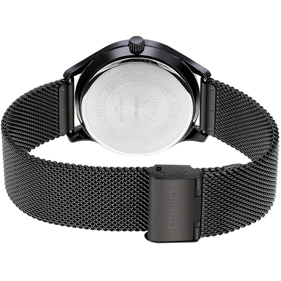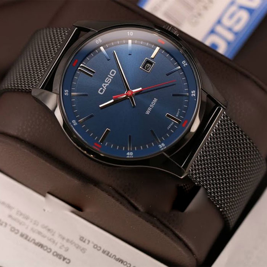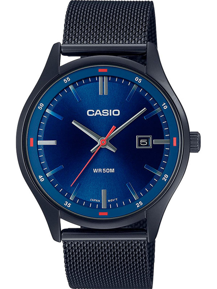 Мужские кварцевые наручные часы Casio MTP-E710MB-2A. Калибр механизма — 4393. На данной модели отображается текущая дата. Стальной браслет миланского плетения. На корпус и браслет нанесено стойкое PVD покрытие. Водонепроницаемость WR50 (5 атм). Размеры корпуса: (ШxВxТ) 40x46.7x8.1 мм. Гарантийный срок — 3 года (1 год от производителя + 2 года от магазина).