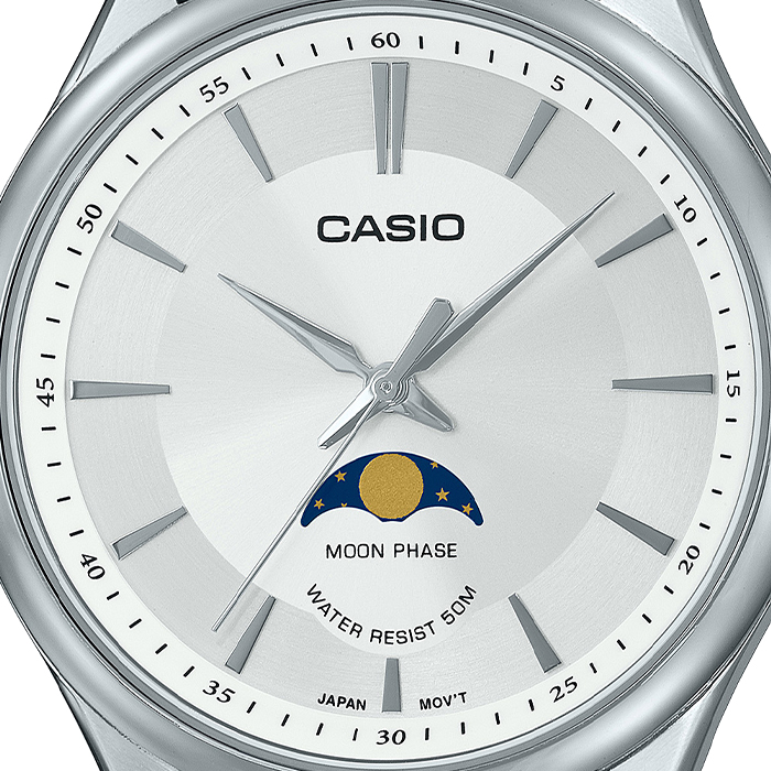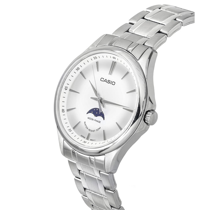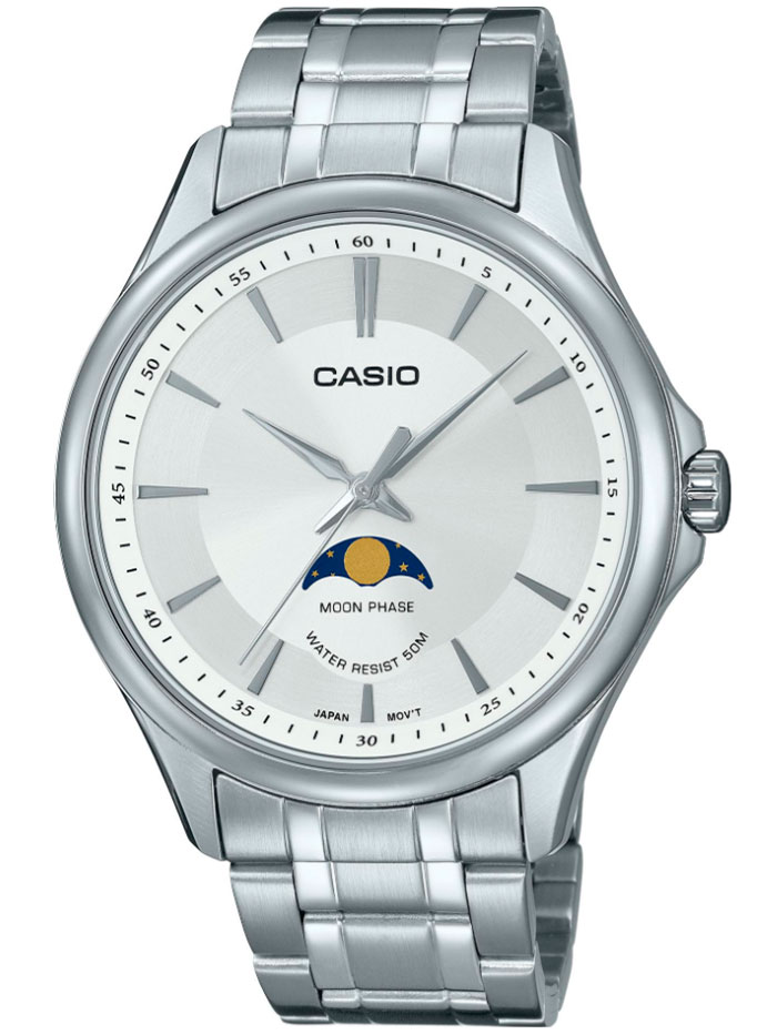Мужские кварцевые наручные часы Casio MTP-M100D-7A. Калибр механизма — 5722. На данной модели отображается фаза луны. Завинчивающаяся задняя крышка. Стальной браслет. Водонепроницаемость WR50 (5 атм). Размеры корпуса: (ШхВхТ) 42.5x48.4x9.6 мм Гарантийный срок — 3 года (1 год от производителя + 2 года от магазина).