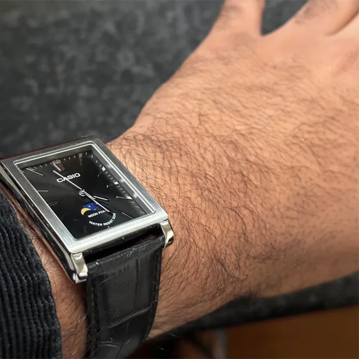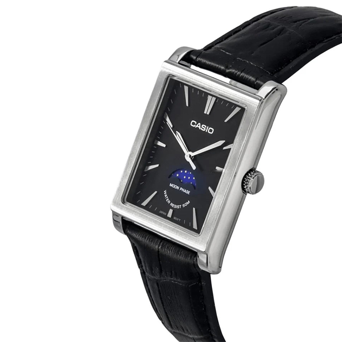 Мужские кварцевые наручные часы Casio MTP-M105L-1A. Калибр механизма — 5722. На данной модели отображается фаза луны. Ремешок из искусственной кожи. Водонепроницаемость WR50 (5 атм). Размеры корпуса: (ШхВхТ) 33x45.5x8.5 мм Гарантийный срок — 3 года (1 год от производителя + 2 года от магазина).