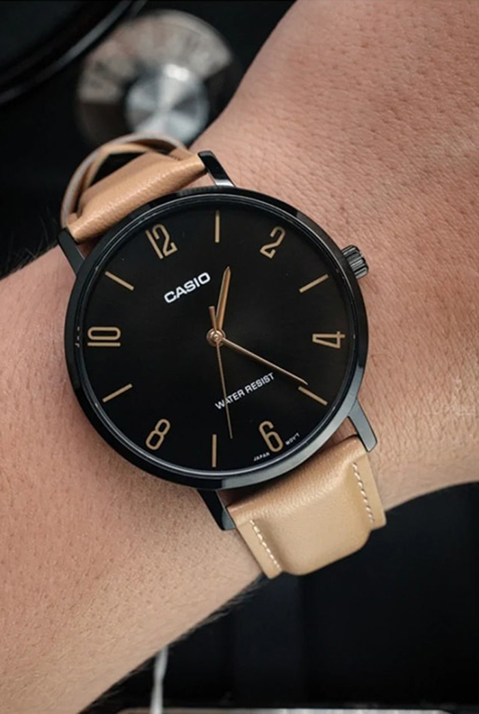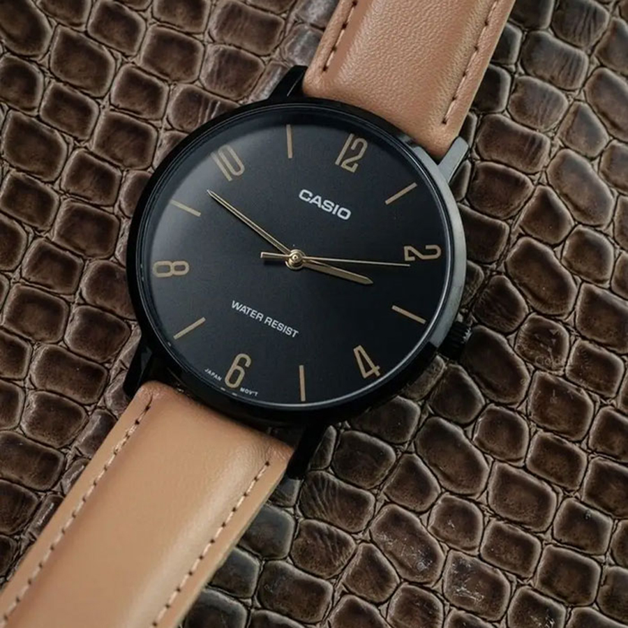 Мужские кварцевые наручные часы Casio MTP-VT01BL-1B. Калибр механизма — 1330. На корпус нанесено стойкое покрытие. Ремешок из искусственной кожи. Водонепроницаемость WR (3 атм). Размеры корпуса: (ШxВxТ) 40x46x8.2 мм Гарантийный срок — 3 года (1 год от производителя + 2 года от магазина).