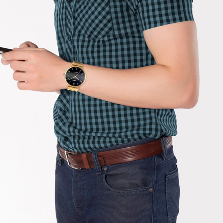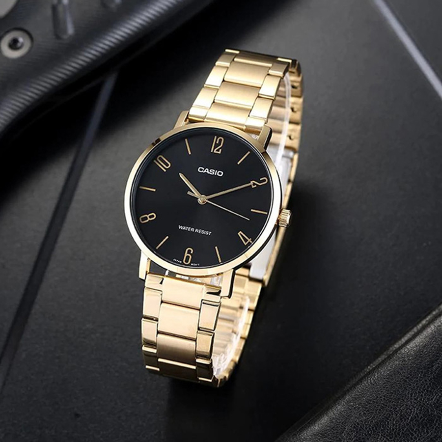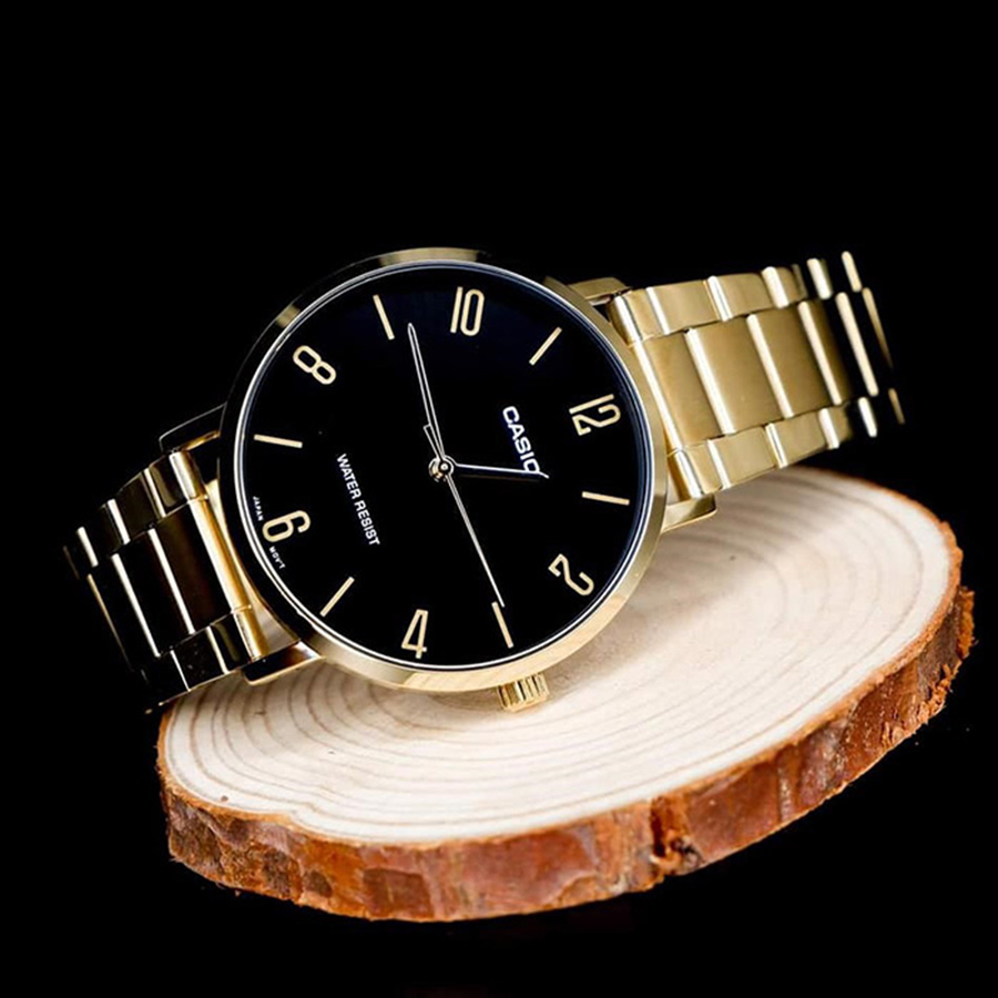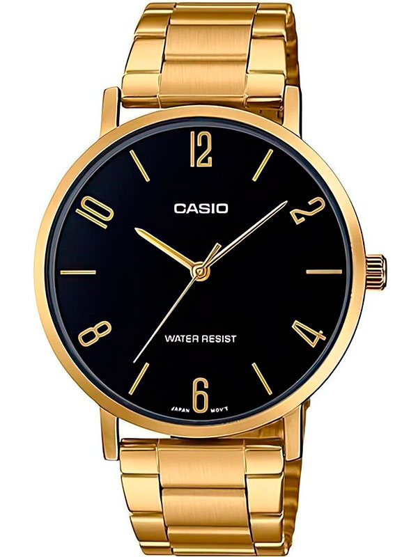 Мужские кварцевые наручные часы Casio MTP-VT01G-1B2. Калибр механизма — 1330. Стальной браслет. На корпус и браслет нанесено стойкое покрытие. Водонепроницаемость WR (3 атм). Размеры корпуса: (ШхВхТ) 40x46x8.2 мм Гарантийный срок — 3 года (1 год от производителя + 2 года от магазина).