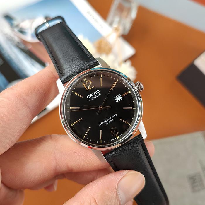 Мужские кварцевые наручные часы Casio MTS-110L-1A. Калибр механизма — 2719. На данной модели отображается дата. Сапфировое стекло. Кожаный ремешок. Водонепроницаемость WR50 (5 атм). Размеры корпуса: (ШхВхТ) 38.8x46x8.8 мм Гарантийный срок — 3 года (1 год от производителя + 2 года от магазина).