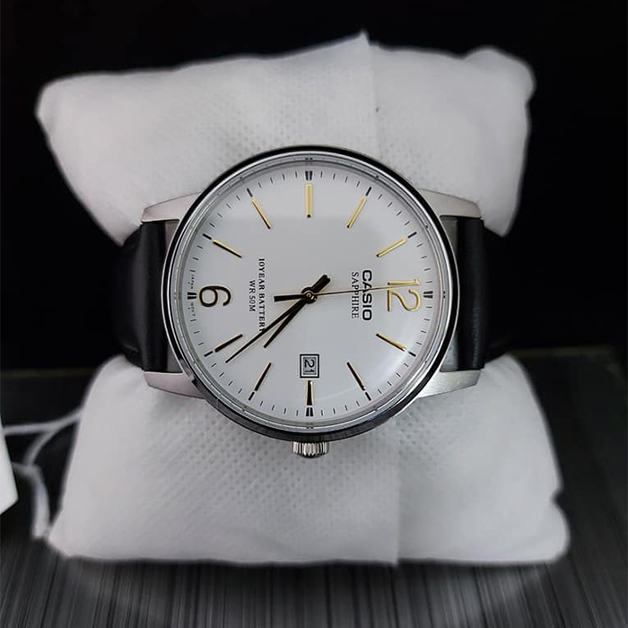 Мужские кварцевые наручные часы Casio MTS-110L-7A. Калибр механизма — 2719. На данной модели отображается дата. Сапфировое стекло. Кожаный ремешок. Водонепроницаемость WR50 (5 атм). Размеры корпуса: (ШхВхТ) 38.8x46x8.8 мм Гарантийный срок — 3 года (1 год от производителя + 2 года от магазина).