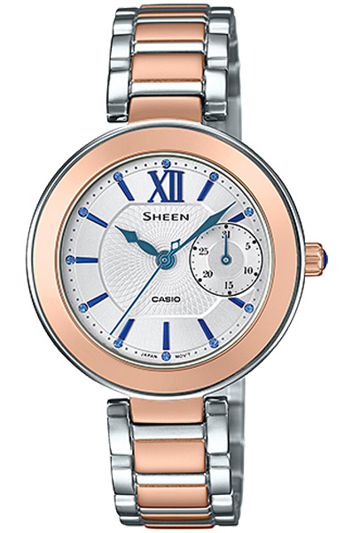 Женские кварцевые наручные часы Casio SHE-3050SG-7A коллекции Sheen. Калибр механизма — 5483. Циферблат украшен камнями Swarovski. Водонепроницаемость WR50 (5 атм).