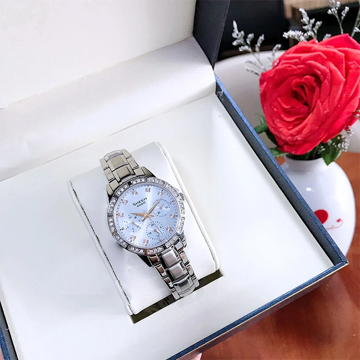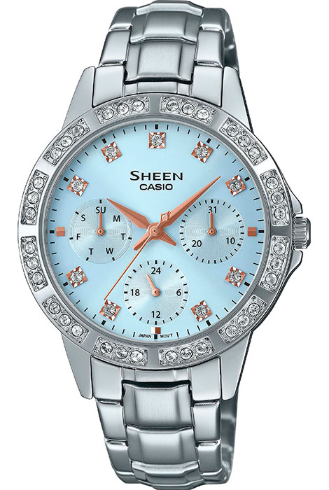 Женские кварцевые наручные часы Casio SHE-3517D-2A коллекции Sheen. Калибр механизма — 2364. На данной модели отображается дата, день недели и время суток (24-х часовая шкала). Корпус и циферблат украшены кристаллами. Сапфировое стекло. Стальной браслет. Водонепроницаемость WR50 (5 атм). Размеры корпуса: (ШxВxТ) 35x41.5x8.1 мм. Гарантийный срок — 3 года (1 год от производителя + 2 года от магазина).