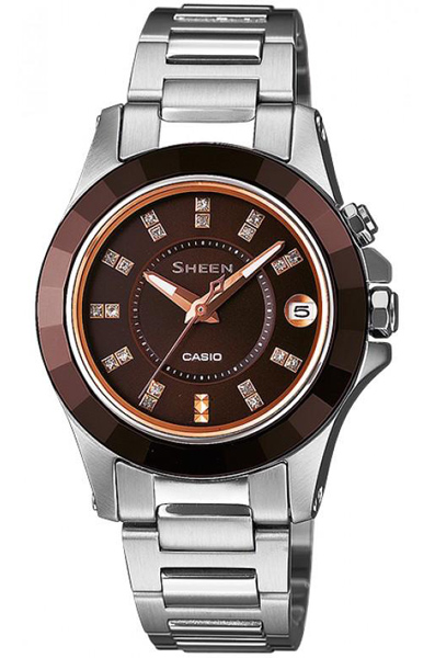 Женские кварцевые наручные часы с подсветкой Casio SHE-4509SG-5A коллекции Sheen. Калибр механизма — 5317. На данной модели отображается дата. Циферблат украшен камнями Swarovski. Яркая диодная подсветка циферблата. Водонепроницаемость WR50 (5 атм).