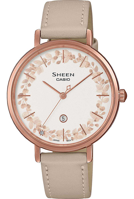 Женские кварцевые наручные часы Casio SHE-4539FPL-7A коллекции Sheen. Калибр механизма — 2744. Тонкий корпус часов — 6.4 мм. На циферблате присутствует индикация текущей даты. Текстурный циферблат украшен кристаллом Swarovski. Сапфировое стекло. Кожаный ремешок. На корпус нанесено стойкое PVD покрытие. Водонепроницаемость WR50 (5 атм). Размеры корпуса: (ШxВxТ) 34x40.5x6.4 мм. Гарантийный срок — 3 года (1 год от производителя + 2 года от магазина).