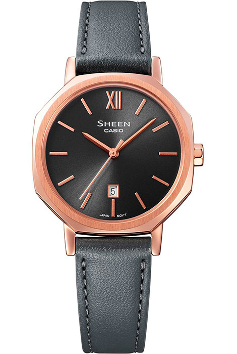 Женские кварцевые наручные часы Casio SHE-4554PGL-8A коллекции Sheen. Калибр механизма — 2718. На данной модели отображается дата. Сапфировое стекло. Кожаный ремешок. На корпус нанесено стойкое PVD покрытие. Водонепроницаемость WR50 (5 атм). Размеры корпуса: (ШxВxТ) 30x37x7.5 мм. Гарантийный срок — 3 года (1 год от производителя + 2 года от магазина).