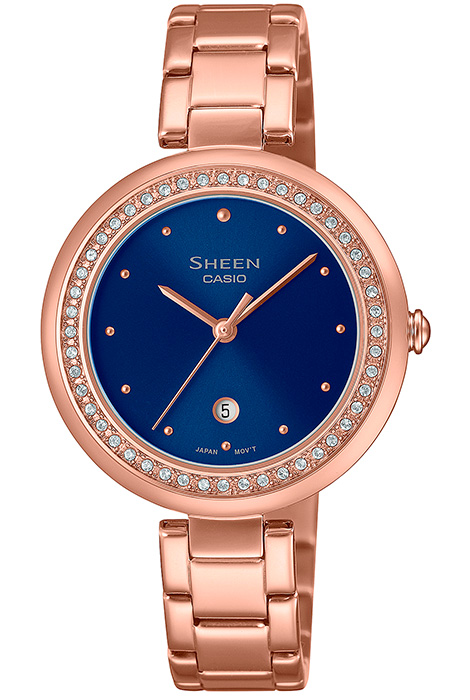 Женские кварцевые наручные часы Casio SHE-4556PG-2A коллекции Sheen. Калибр механизма — 2744. Тонкий корпус часов - всего 6.2 мм. На циферблате присутствует индикация текущей даты. Корпус украшен камнями Swarovski. Установлено сапфировое стекло устойчивое к царапинам. На корпус и браслет нанесено стойкое PVD покрытие. Водонепроницаемость WR50 (5 атм). Размеры корпуса: (ШхВхТ) 32x39x6.2 мм Гарантийный срок — 3 года (1 год от производителя + 2 года от магазина).