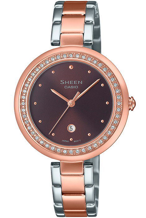 Женские кварцевые наручные часы Casio SHE-4556SPG-5A коллекции Sheen. Калибр механизма — 2744. Тонкий корпус часов - всего 6.2 мм. На циферблате присутствует индикация текущей даты. Корпус украшен камнями Swarovski. Установлено сапфировое стекло устойчивое к царапинам. На корпус и браслет нанесено стойкое PVD покрытие. Водонепроницаемость WR50 (5 атм). Размеры корпуса: (ШхВхТ) 32x39x6.2 мм Гарантийный срок — 3 года (1 год от производителя + 2 года от магазина).
