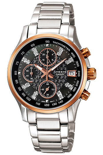Женские кварцевые наручные часы с хронографом (секундомером) Casio SHN-5016D-1A коллекции Sheen. Калибр механизма — 5191. На данной модели отображается дата и время суток (24-х часовая шкала). Секундомер может отсчитывать до 60 минут. Стрелки покрыты люминесцентным напылением (светятся в темноте). Циферблат украшен камнями Swarovski. Завинчивающаяся задняя крышка.