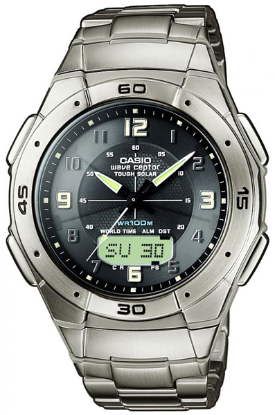 Кварцевые мужские наручные часы на солнечной батарее LCW-M150D-1A с радиоконтролем. Калибр механизма — 5053. Функциональность данной модели: режим сохранения энергии, индикатор заряда батареи, радиоконтроль точного времени (Wave Ceptor), функция летнего времени (DST), мировое время 30 городов (29 часовых поясов), автоматический календарь до 2099 года (индикация даты и дня недели), 3 независимых будильников, сигнал начала часа, секундомер с измерением до 99 минут 59.99 cек., диодная подсветка циферблата и люминесцентное напыление на стрелках. Водонепроницаемость WR100 (10 атм).