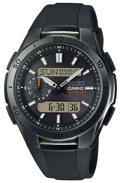 Мужские наручные часы на солнечной батарее Casio WVA-M650B-1A с радиоконтролем. Калибр механизма — 5110. Функциональность данной модели: режим сохранения энергии, индикатор заряда батареи, радиоконтроль точного времени (Wave Ceptor), функция летнего времени (DST), мировое время 48 городов (29 часовых поясов), автоматический календарь до 2099 года (индикация даты и дня недели), 5 независимых будильников, сигнал начала часа, секундомер с измерением до 23 часов 59 минут 59.99 cек., таймер обратного отсчета (диапазон времени 60 минут), полностью автоматическая светодиодная подсветка (автоматически включается только в темноте) и люминесцентное напыление на стрелках.