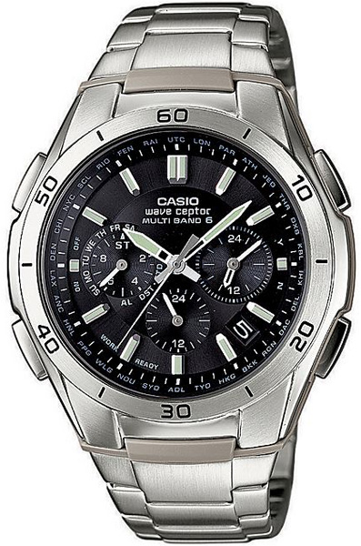Кварцевые мужские наручные часы на солнечной батарее WVQ-M410D-1A с радиоконтролем. Калибр механизма — 5174. Функциональность данной модели: режим сохранения энергии, радиоконтроль точного времени (Wave Ceptor), функция летнего времени (DST), мировое время 29 городов (29 часовых поясов), автоматический календарь до 2099 года (индикация даты и дня недели), индикация времени суток (24-х часовая шкала), будильник, секундомер с измерением до 23 часа 59 минут 59.99 cек., таймер обратного отсчета (диапазон времени 24 часа), люминесцентное напыление на стрелках и метках (светятся в темноте).