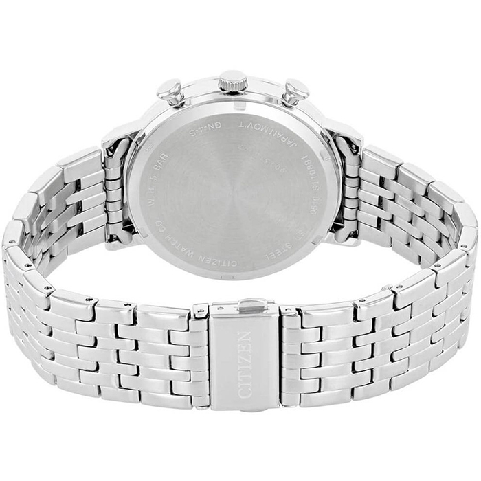Мужские кварцевые наручные часы с хронографом (секундомером) Citizen AN3610-55E. Калибр механизма — 0510. На данной модели отображается дата. Секундомер может отсчитывать до 11 часов 59 минут 59 сек. Завинчивающаяся задняя крышка. Стальной браслет. Водонепроницаемость WR50 (5 атм).
