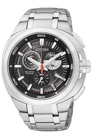 Титановые мужские кварцевые наручные часы с хронографом (секундомером) на солнечной батарее Citizen AT2021-54E коллекции Eco-Drive Chrono. Калибр механизма — B620. Аккумулятор данной модели заряжается от любого источника света. Срок работы аккумулятора с полным зарядом — 270 дней. Примерный срок службы аккумулятора — 10 лет. Присутствует функция информирования о недостаточном заряде. На данной модели отображается дата и время суток (24-х часовая шкала). Секундомер может отсчитывать до 60 минут. Стрелки и метки покрыты люминесцентным напылением (светятся в темноте). Сапфировое стекло. Водонепроницаемость WR100 (10 атм). Завинчивающаяся задняя крышка.