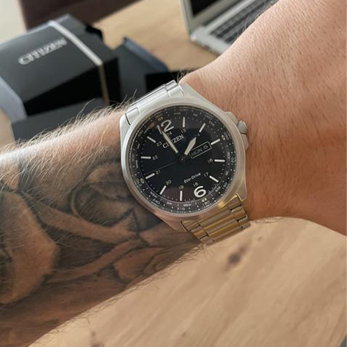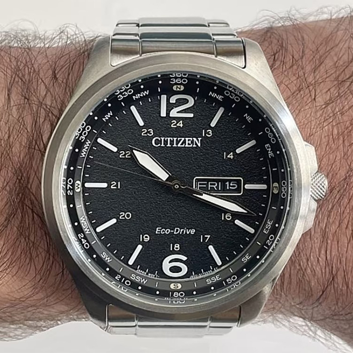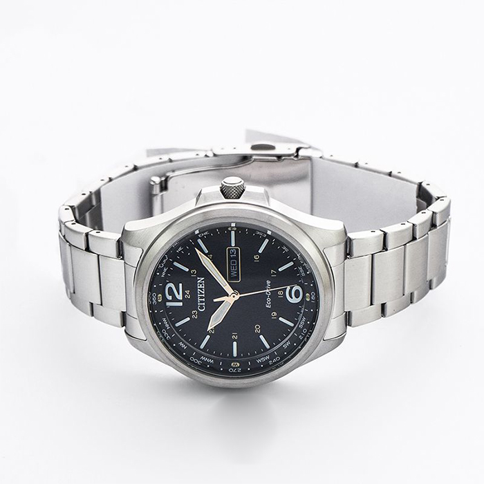 Мужские кварцевые наручные часы на солнечной батарее Citizen AW0110-82E коллекции Eco-Drive. Калибр механизма — J800. Аккумулятор данной модели заряжается от любого источника света. Срок работы аккумулятора с полным зарядом — до 240 дней. Примерный срок службы аккумулятора — 10 лет. Присутствует функция информирования о недостаточном заряде и функция предотвращения перезарядки. На данной модели отображается день недели и текущая дата. На циферблате имеется шкала солнечного компаса (Азимут). Стрелки и метки покрыты люминесцентным напылением (светятся в темноте). Стальной браслет. Завинчивающаяся задняя крышка. Водонепроницаемость WR100 (10 атм).