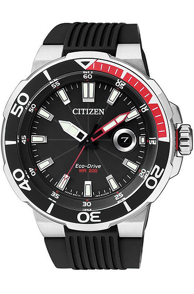 Мужские водонепроницаемые наручные часы на солнечной батарее Citizen AW1420-04E коллекции Eco-Drive. Калибр механизма — J810. Данная модель обладает высокой степенью водонепроницаемости WR200 (20 атм) и подходит для глубокого погружения под воду. Аккумулятор данной модели заряжается от любого источника света. Срок работы аккумулятора с полным зарядом — 240 дней. Примерный срок службы аккумулятора — 10 лет. Присутствует функция информирования о недостаточном заряде. На данной модели отображается дата. Стрелки покрыты и метки люминесцентным напылением (светятся в темноте). На корпус частично нанесено PVD покрытие. Завинчивающаяся заводная головка и задняя крышка для более уверенной водонепроницаемости часов. Вращающийся безель.