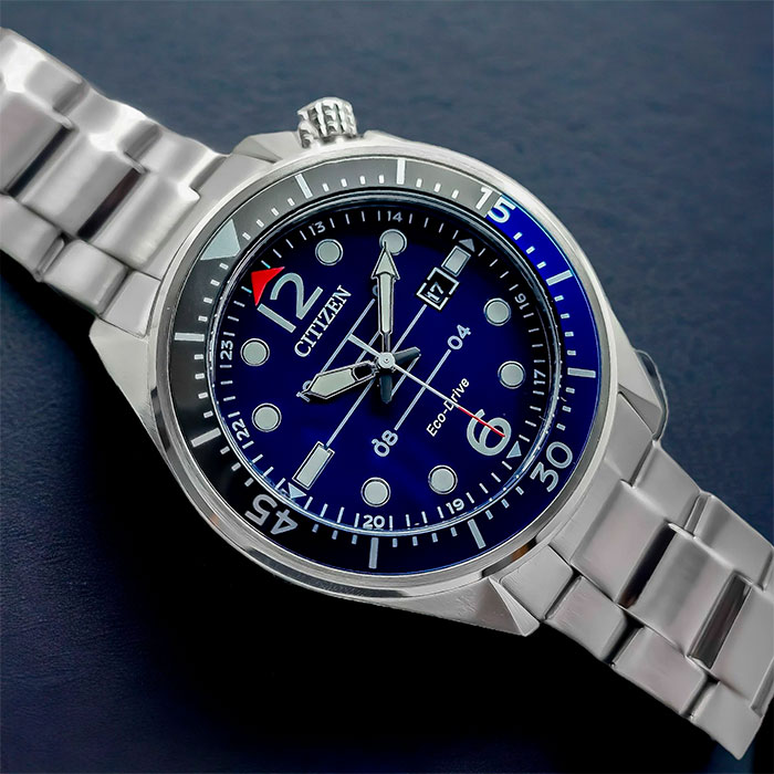 Мужские кварцевые наручные часы на солнечной батарее Citizen AW1716-83L коллекции Eco-Drive. Калибр механизма — J810. Аккумулятор данной модели заряжается от любого источника света. Срок работы аккумулятора с полным зарядом — до 240 дней. Примерный срок службы аккумулятора — 10 лет. Присутствует функция информирования о недостаточном заряде и функция предотвращения перезарядки. На данной модели отображается текущая дата. Стрелки и метки покрыты люминесцентным напылением (светятся в темноте). Стальной браслет. Завинчивающаяся задняя крышка. На корпус частично нанесено стойкое PVD покрытие. Водонепроницаемость WR100 (10 атм).