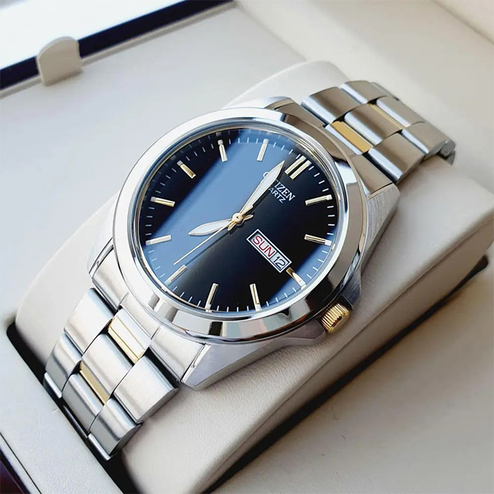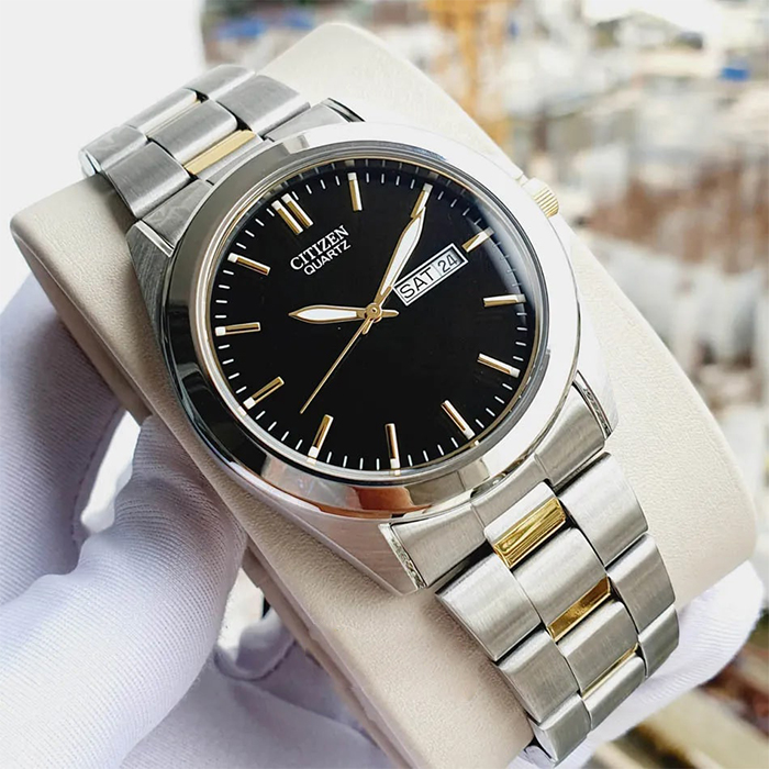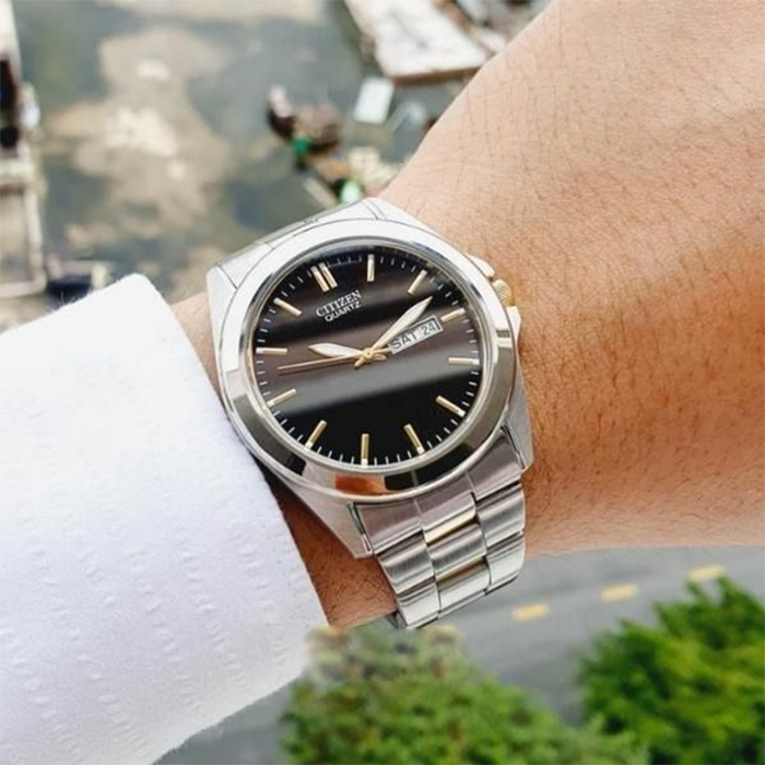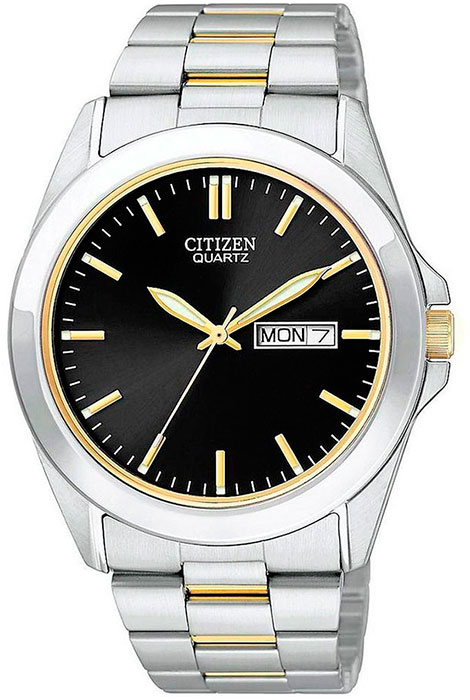 Мужские кварцевые наручные часы Citizen BF0584-56E коллекции Basic. Калибр механизма — 1102. На данной модели отображается день недели и текущая дата. Стрелки и метки покрыты люминесцентным напылением (светятся в темноте). На корпус и браслет частично нанесено стойкое PVD покрытие. Водонепроницаемость WR (3 атм).
