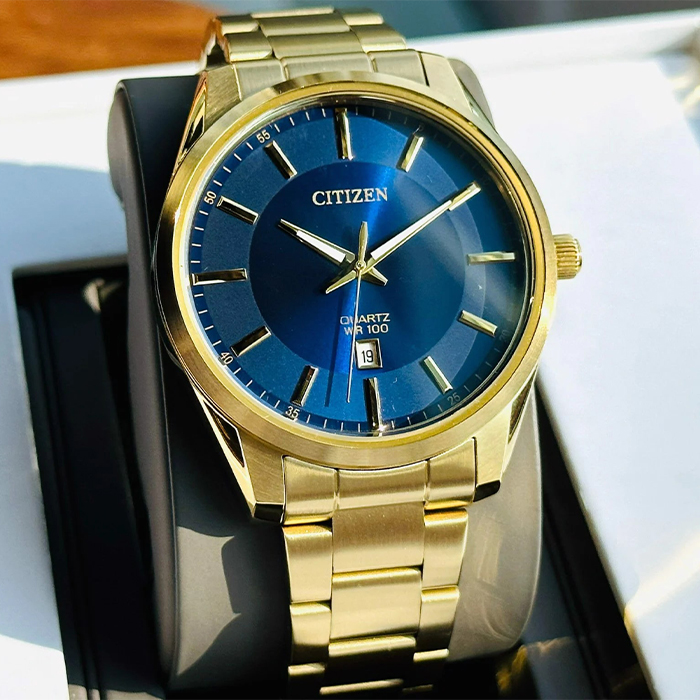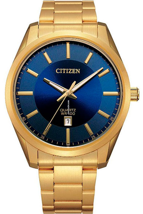 Мужские кварцевые наручные часы Citizen BI1032-58L коллекции Basic. Калибр механизма — 1112. На данной модели отображается текущая дата. Стрелки покрыты люминесцентным напылением (светятся в темноте). Завинчивающаяся задняя крышка. Стальной браслет. На корпус и браслет нанесено стойкое PVD покрытие. Водонепроницаемость WR100 (10 атм).
