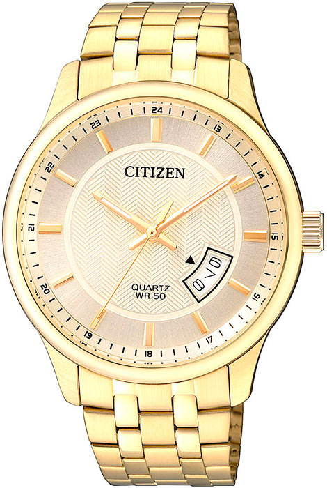 Мужские кварцевые наручные часы Citizen BI1052-85P коллекции Basic. Калибр механизма — 1112. На данной модели отображается текущая дата. Стрелки покрыты люминесцентным напылением (светятся в темноте). Стальной браслет. На корпус и браслет нанесено стойкое PVD покрытие. Водонепроницаемость WR50 (5 атм).