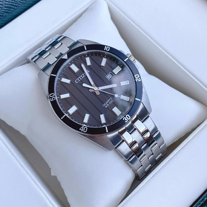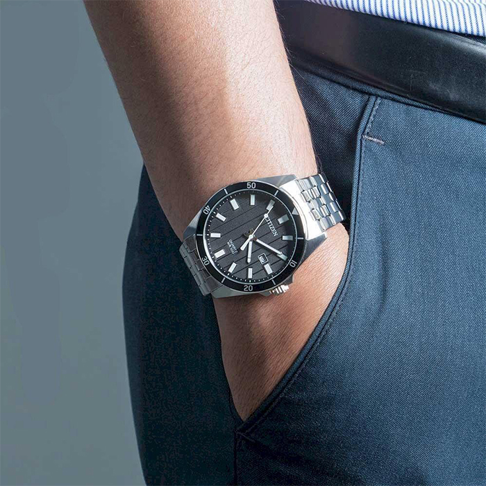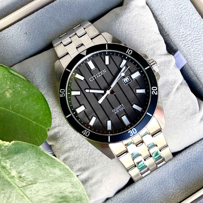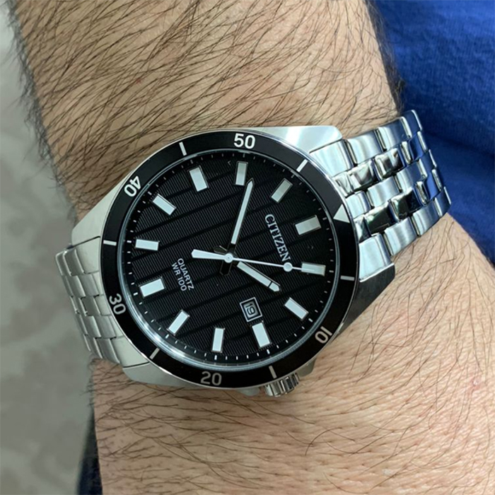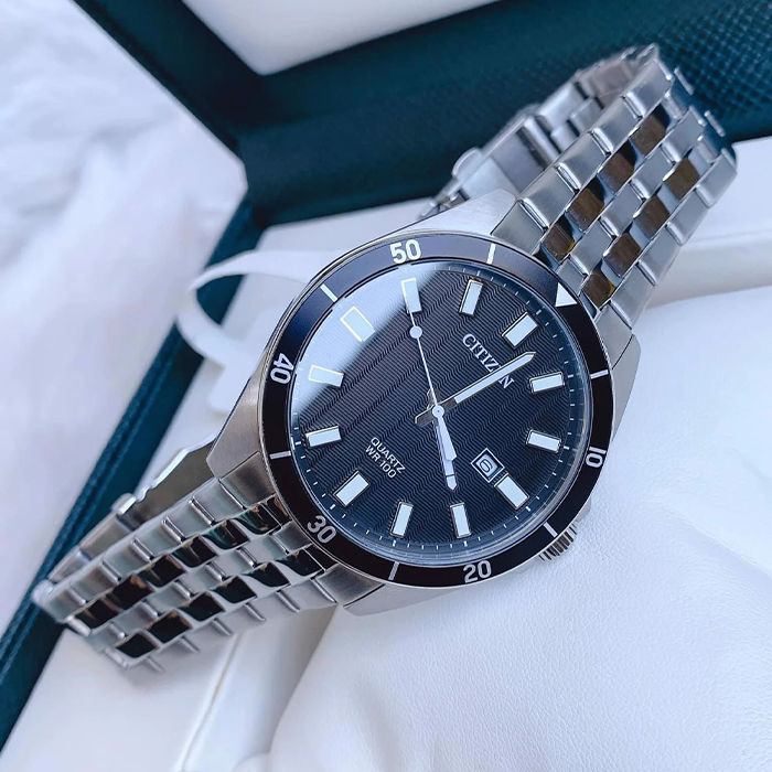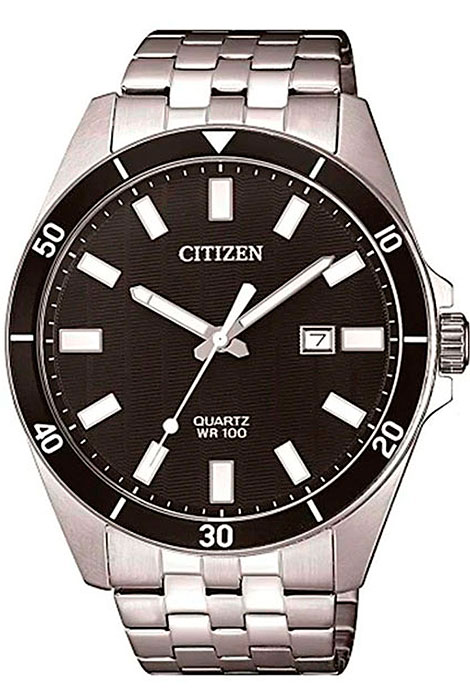 Мужские кварцевые наручные часы Citizen BI5050-54E коллекции Basic. Калибр механизма — G111. На данной модели отображается текущая дата. Стрелки и метки покрыты люминесцентным напылением (светятся в темноте). Стальной браслет. Завинчивающаяся задняя крышка. На корпус частично нанесено стойкое PVD покрытие. Водонепроницаемость WR100 (10 атм).
