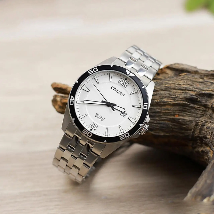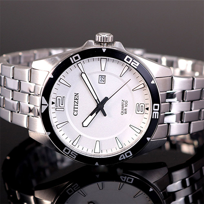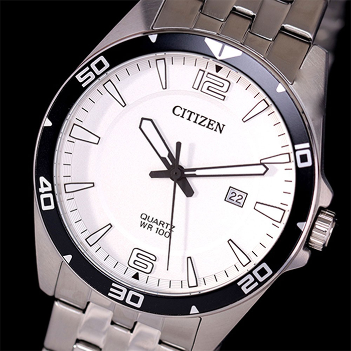 Мужские кварцевые наручные часы Citizen BI5051-51A коллекции Basic. Калибр механизма — G111. На данной модели отображается текущая дата. Стрелки и метки покрыты люминесцентным напылением (светятся в темноте). Стальной браслет. Завинчивающаяся задняя крышка. На корпус частично нанесено стойкое PVD покрытие. Водонепроницаемость WR100 (10 атм).