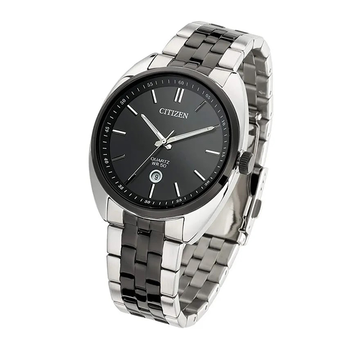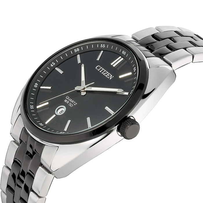 Мужские кварцевые наручные часы Citizen BI5098-58E коллекции Basic. Калибр механизма — G111. На данной модели отображается текущая дата. Стрелки покрыты люминесцентным напылением (светятся в темноте). Стальной браслет. На корпус и браслет частично нанесено стойкое PVD покрытие. Водонепроницаемость WR50 (5 атм).