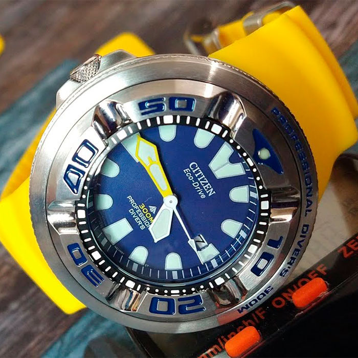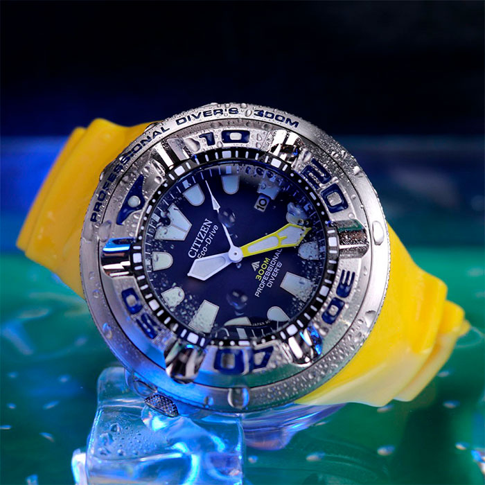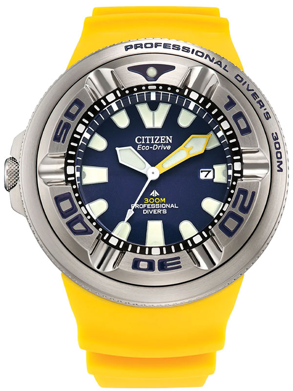 Мужские кварцевые наручные часы на солнечной батарее Citizen BJ8058-06L коллекции Eco-Drive Promaster Professional Diver. Калибр механизма — B873. Аккумулятор данной модели заряжается от любого источника света. Срок работы аккумулятора с полным зарядом — около 6-ти месяцев. Примерный срок службы аккумулятора — 10 лет. Присутствует функция информирования о недостаточном заряде и функция защиты от перезаряда. На данной модели отображается дата. Вращающийся в одном направлении безель. Сферическое минеральное стекло толщиной 6 мм. Данная модель является профессиональными дайверскими часами, обладает высокой степенью водонепроницаемости WR300 (30 атм), подходит для глубокого погружения под воду и соответствует стандарту дайверских часов ISO 6425. Завинчивающаяся задняя крышка и заводная головка. Стрелки и метки покрыты люминесцентным напылением (светятся в темноте). Полиуретановый ремешок.