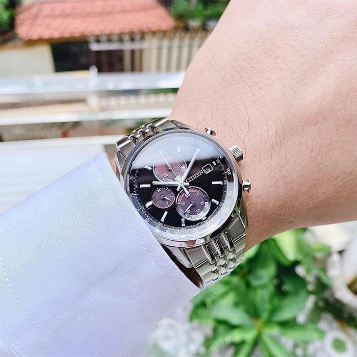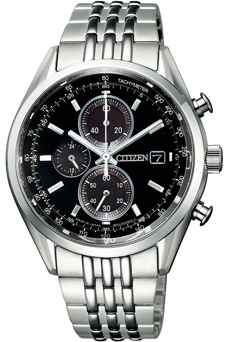 Мужские кварцевые часы с хронографом (секундомером) Citizen CA0450-57E коллекции Eco-Drive Chrono. Калибр механизма — B612. Аккумулятор данной модели заряжается от любого источника света. Срок работы аккумулятора с полным зарядом — 210 дней. Примерный срок службы аккумулятора — 10 лет. Присутствует функция информирования о недостаточном заряде. На данной модели отображается дата и время суток (24-х часовая шкала). Секундомер может отсчитывать до 59 минут 59 сек. с точностью 1/5 секунды. На циферблате присутсвует шкала тахиметра. Установлено сапфировое стекло устойчивое к царапинам. Стрелки и метки покрыты люминесцентным напылением (светятся в темноте). Водонепроницаемость WR100 (10 атм).