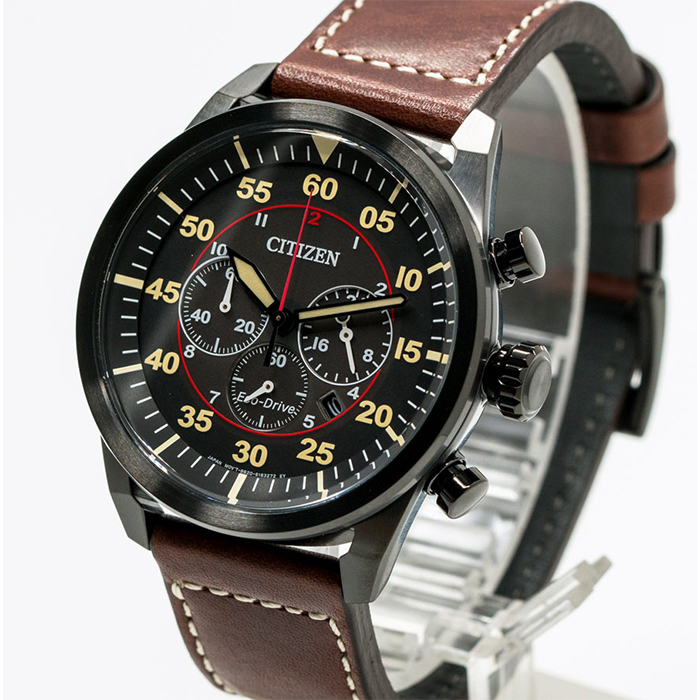 Мужские кварцевые часы на солнечной батарее с хронографом (секундомером) Citizen CA4218-14E коллекции Eco-Drive Chrono. Калибр механизма — B620. Аккумулятор данной модели заряжается от любого источника света. Срок работы аккумулятора с полным зарядом — 270 дней. Примерный срок службы аккумулятора — 10 лет. Присутствует функция информирования о недостаточном заряде. На данной модели отображается дата и время суток (24-х часовая шкала). Секундомер может отсчитывать до 60 минут с точностью 1/5 секунды. Стрелки и метки покрыты люминесцентным напылением (светятся в темноте). Кожаный ремешок. Завинчивающаяся задняя крышка. На корпус нанесено стойкое PVD покрытие. Водонепроницаемость WR100 (10 атм).