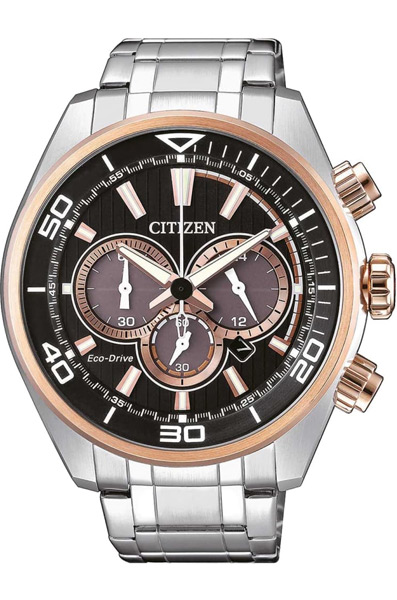 Мужские кварцевые часы с хронографом (секундомером) Citizen CA4336-85E коллекции Eco-Drive Chrono. Калибр механизма — B612. Аккумулятор данной модели заряжается от любого источника света. Срок работы аккумулятора с полным зарядом — 270 дней. Примерный срок службы аккумулятора — 10 лет. Присутствует функция информирования о недостаточном заряде. На данной модели отображается дата и время суток (24-х часовая шкала). Секундомер может отсчитывать до 59 минут 59 сек. с точностью 1/5 секунды. Стрелки и метки покрыты люминесцентным напылением (светятся в темноте). На корпус частично нанесено стойкое PVD покрытие. Завинчивающаяся задняя крышка часов. Водонепроницаемость WR100 (10 атм).