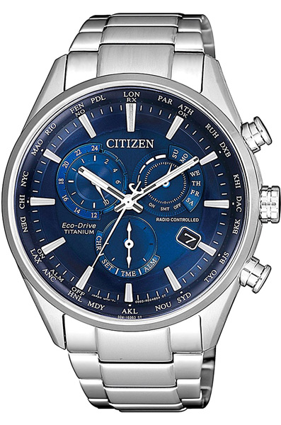 Мужские кварцевые наручные часы с вечным календарем и радиоконтролем на солнечной батарее Citizen CB5020-87L коллекции Radio Controled. Калибр механизма — E660. Корпус и браслет изготовлены из титана. Особенность данной модели — в наличии функции автоматического календаря до 28 февраля 2100 года и функции контроля точного времени по радиосигналу. Так же присутствуют функции хронографа (секундомера), мирового времени (24 города) и будильника с возможностью установки на ближайшие 12 часов. Аккумулятор данной модели заряжается от любого источника света. Срок работы аккумулятора с полным зарядом — 300 дней. Примерный срок службы аккумулятора — 10 лет. Присутствует индикатор уровня заряда аккумулятора. На данной модели отображается текущая дата и день недели. Стрелки и метки покрыты люминесцентным напылением (светятся в темноте). Установлено устойчивое к появлению царапин сапфировое стекло с антибликовым покрытием. Водонепроницаемость WR100 (10 атм).
