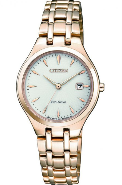 Женские кварцевые наручные часы на солнечной батарее Citizen EW2483-85B коллекции Eco-Drive. Калибр механизма — E011. Аккумулятор данной модели заряжается от любого источника света. Срок работы аккумулятора с полным зарядом — около 6-ти месяцев. Примерный срок службы аккумулятора — 10 лет. Присутствует функция информирования о недостаточном заряде. На данной модели отображается дата. На корпус и браслет нанесено стойкое PVD покрытие.