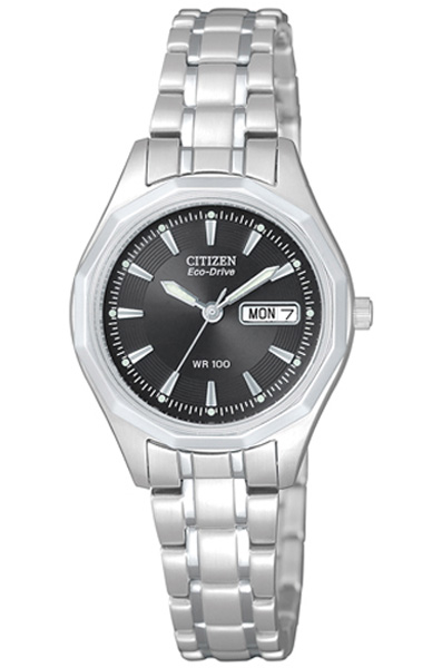 Женские кварцевые наручные часы на солнечной батарее Citizen EW3140-51EE коллекции Eco-Drive. Калибр механизма — E001. Аккумулятор данной модели заряжается от любого источника света. Срок работы аккумулятора с полным зарядом — около 6-ти месяцев. Примерный срок службы аккумулятора — 10 лет. Присутствует функция информирования о недостаточном заряде. На данной модели отображается дата и день недели. Стрелки и метки покрыты люминесцентным напылением (светятся в темноте). Водонепроницаемость WR100 (10 атм).